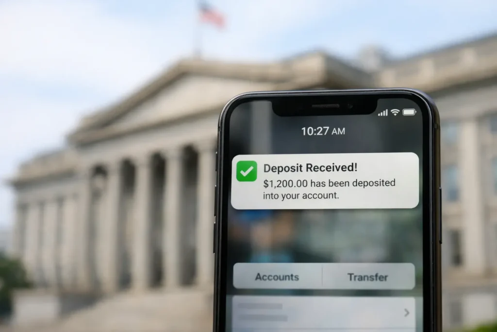 The confirmed deposit is part of a tariff rebate program created to distribute a portion of revenues collected from specific trade tariffs. The IRS will handle distribution using existing taxpayer records and direct deposit details on file.